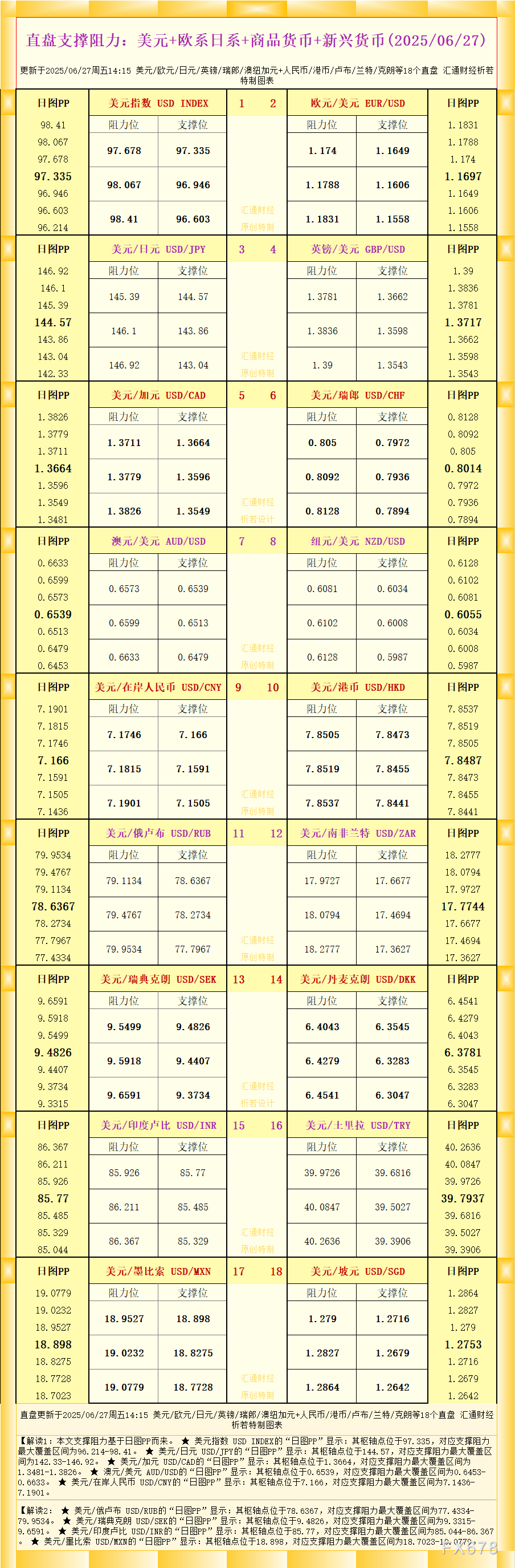 Pepperstone激石平台官网:一张图看18个直盘外汇支撑阻力:美元+欧系日
