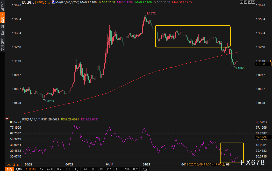 从4小时图看,欧元兑美元技术形态已明确转弱: