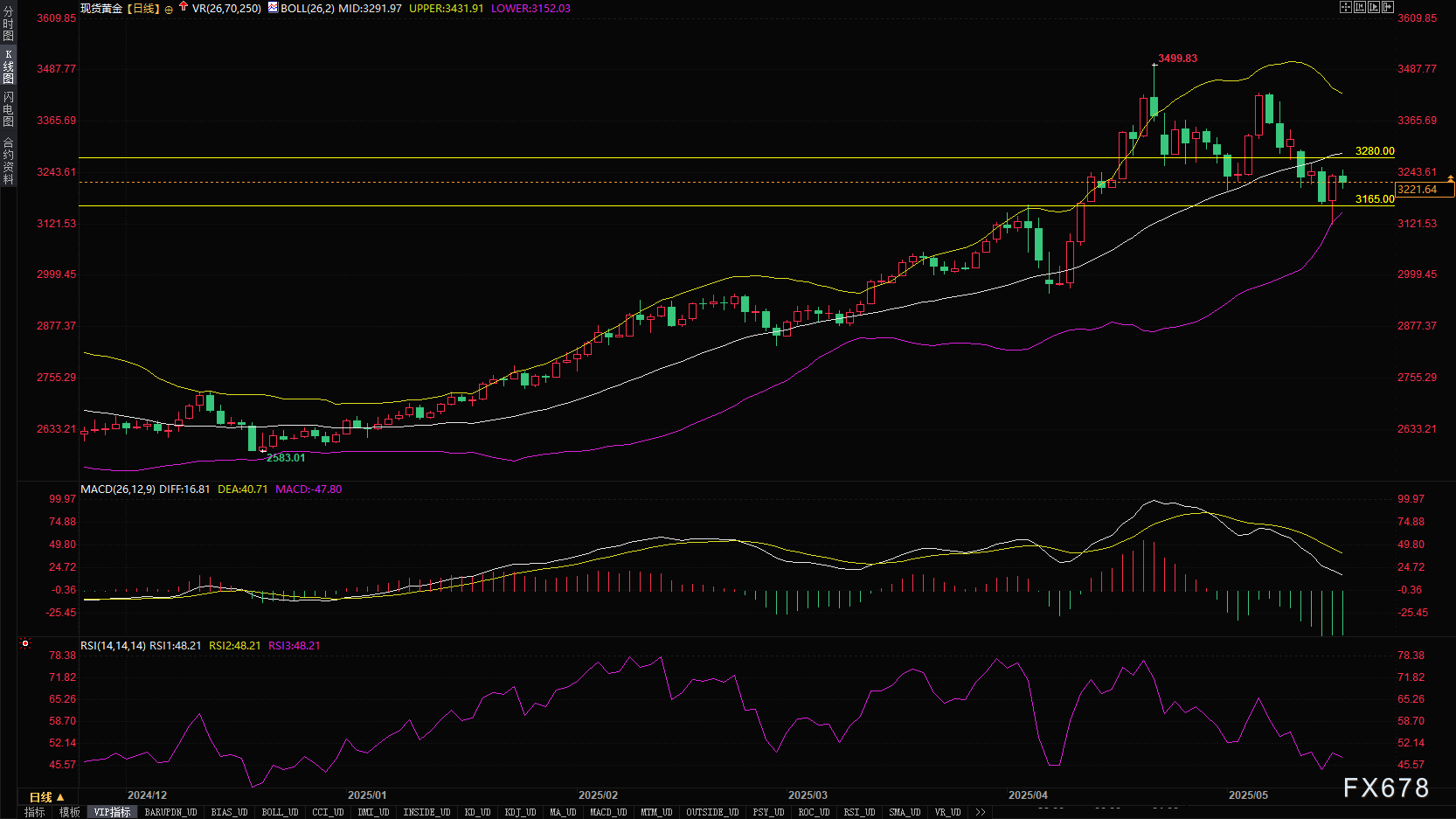 RSI指标目前处于48左右,处于中性偏弱区域,表明短期内可能还会有下行压力。价格在3250美元形成了重要阻力位,若能有效突破此位置,可能会进一步向3280美元区域推进;若失守当前支撑,则可能测试3165美元甚至是3100美元整数关口。