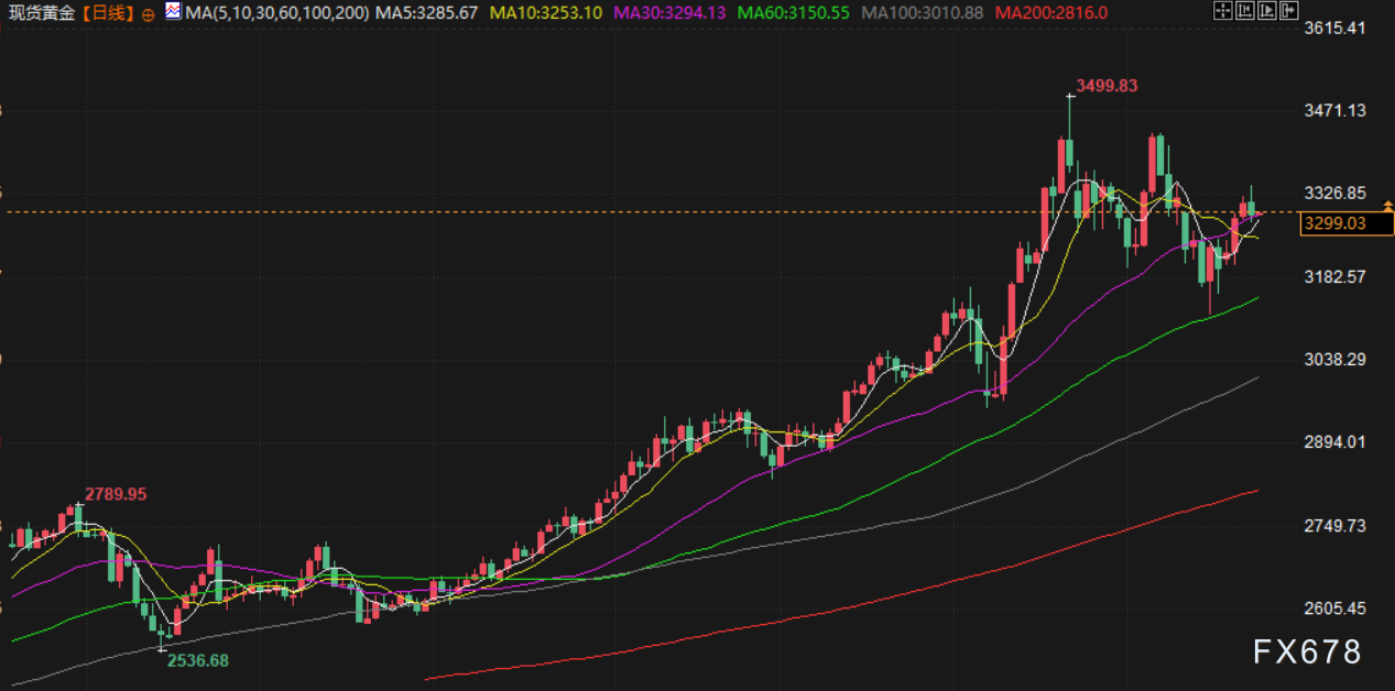 金价周四由涨转跌,因美元走强,且投资者在盘初触及两周高位后获利了结。现货金下跌0.6%,报每盎司3295.21美元。金价稍早触及5月9日以来最高,随后下跌超过1%。金价在此前三个交易日均上涨。美国期金下跌0.6%,报 3294.90 美元。