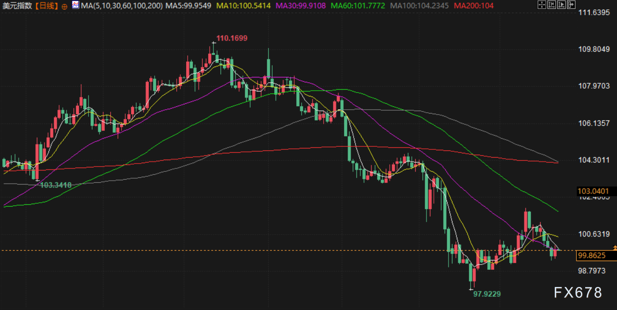 美元兑瑞郎上涨 0.5%,报 0.8286 瑞郎。美元指数上涨0.3%,至99.905,周三触及两周最低的99.333。