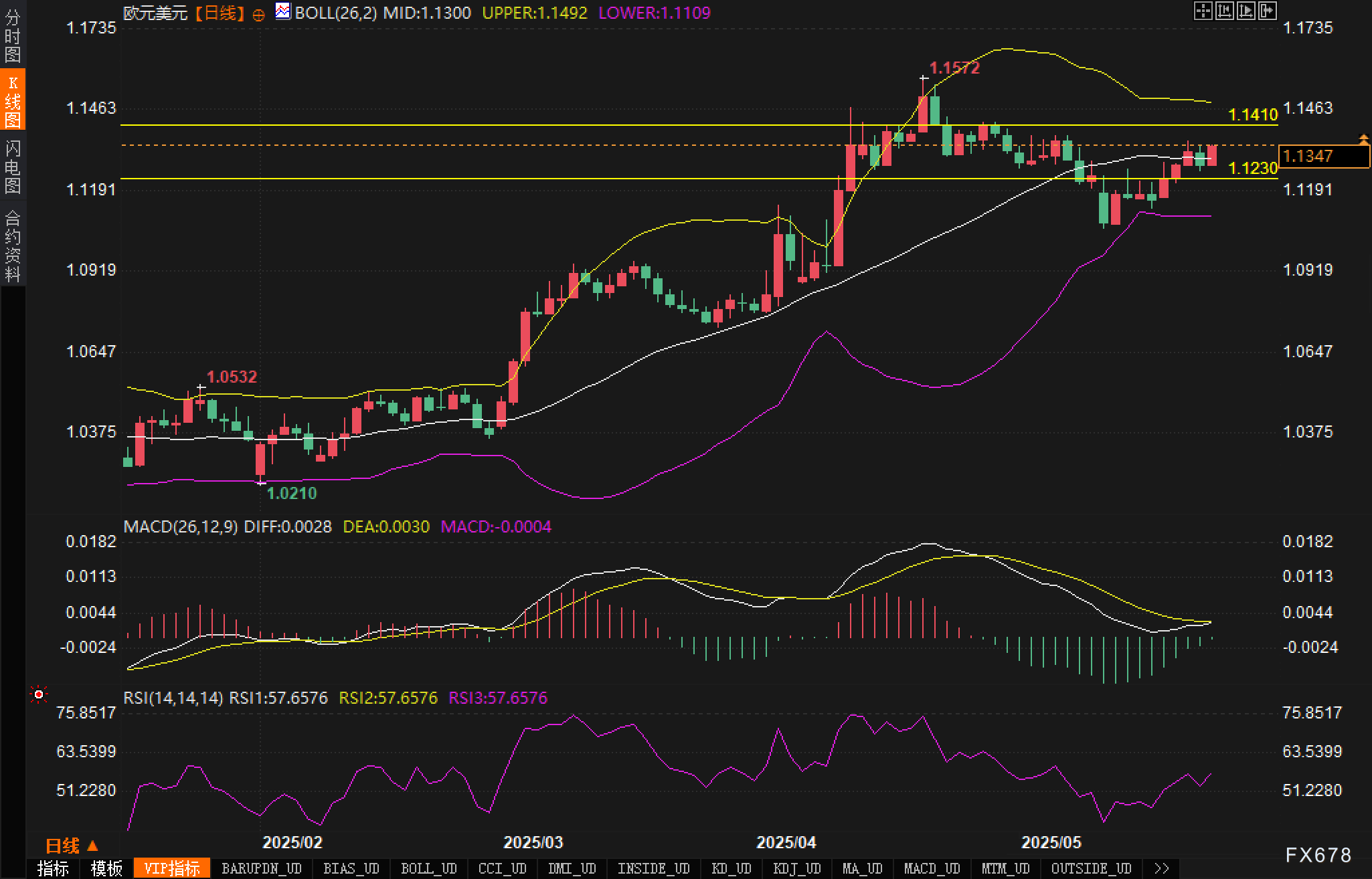 短期展望方面,技术面和基本面因素共同指向欧元兑美元将维持区间震荡格局。1.1280-1.1380的核心交易区间料将继续发挥作用,除非出现重大基本面变化。若美国债务担忧情绪继续发酵,叠加美元指数进一步走弱,欧元兑美元有望挑战区间上沿甚至突破1.1410阻力。相反,如果美国经济数据持续向好,或者市场风险偏好急剧恶化,汇价可能回落至区间下沿1.1280附近寻求支撑。