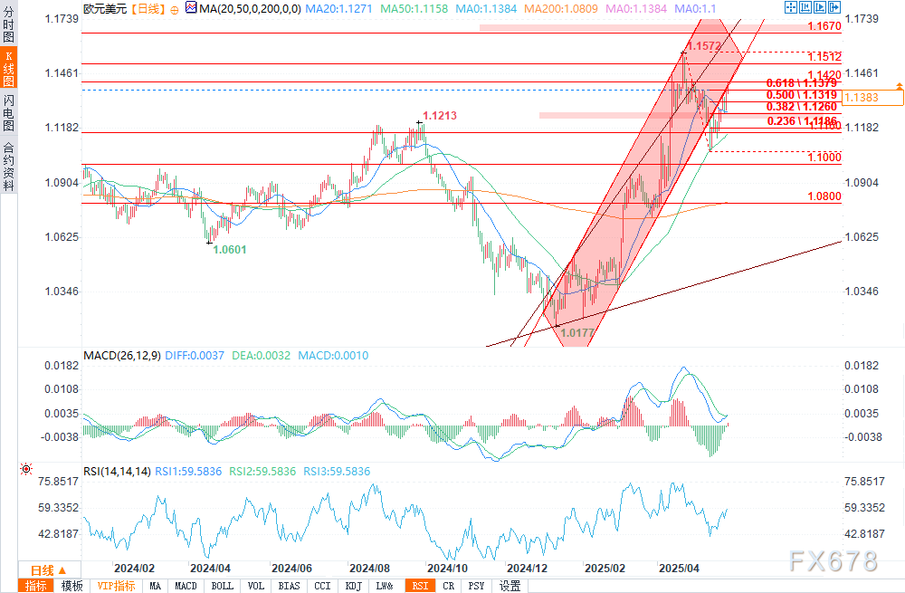 欧元兑美元仍具上行潜力,需持续站稳1.1415上方以触发下一轮看涨行情。