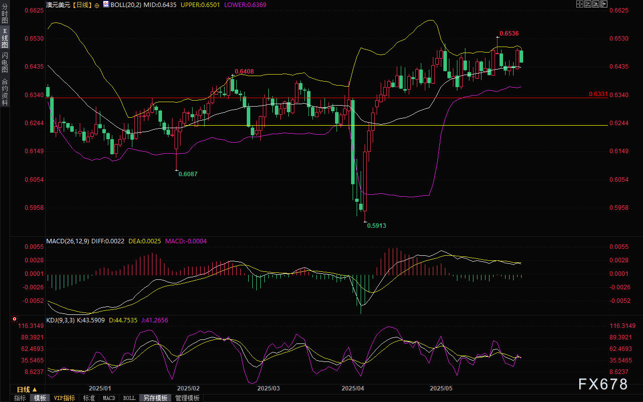 值得注意的是,澳大利亚第一季度核心通胀率已回落至2.9%,自2021年底以来首次回到RBA设定的2%-3%目标区间。决策者预计,到2025年底,核心通胀率将进一步降至2.6%。这一进展为降息提供了国内依据,而全球不确定性则进一步强化了宽松政策的必要性。市场预计,RBA在7月8日的下次会议上再次降息的可能性约为77%,且到2026年初,利率可能降至3.10%或更低,接近中性政策水平,即既不刺激也不抑制经济增长。