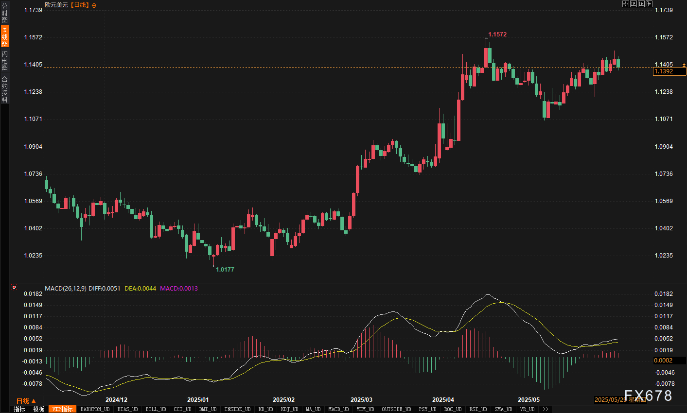 欧元兑美元本周震荡上行,周线上涨0.41%,周四一度触及1.1495的六周高点,但周五因美元走强回落至1.1395。尽管如此,欧元本周整体表现稳健。