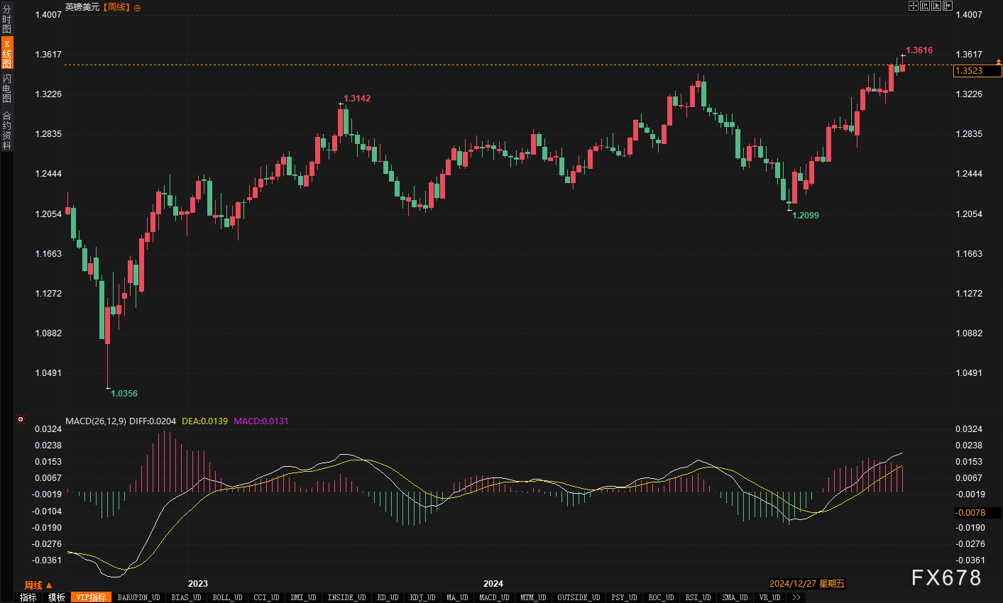 英镑兑美元本周震荡上行,周线上涨0.5%,在主要货币中表现较为稳健。英国避开特朗普新实施的钢铝关税为英镑提供支撑,市场情绪相对乐观。