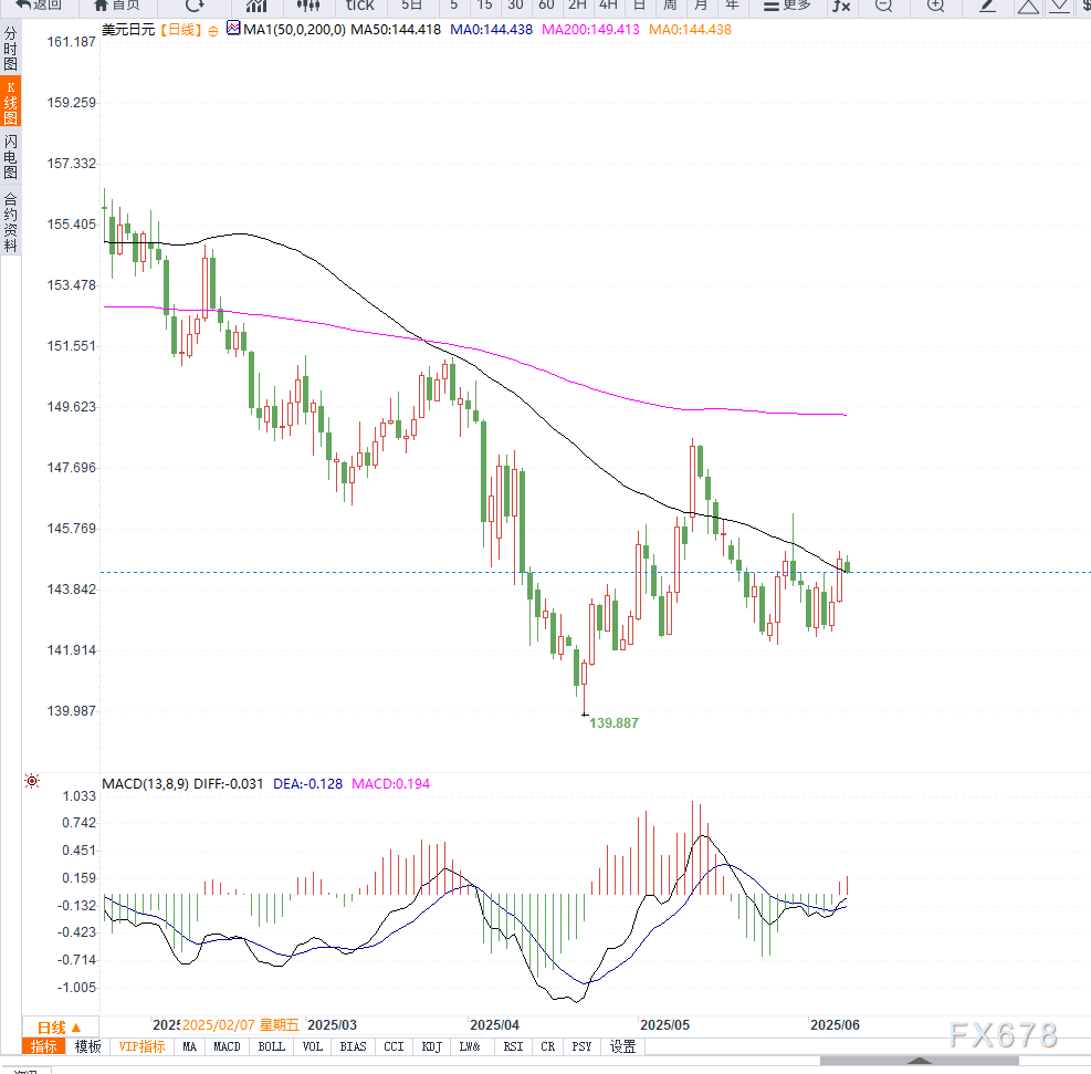 技术面上,美元兑日元(USD/JPY)在上周突破短期盘整区间后,一度触及145关口,但目前遇到较强阻力。当前指标信号中性,若未能有效站稳145.00关口,短线或将回撤测试144.00这一前期区间顶部支撑位。