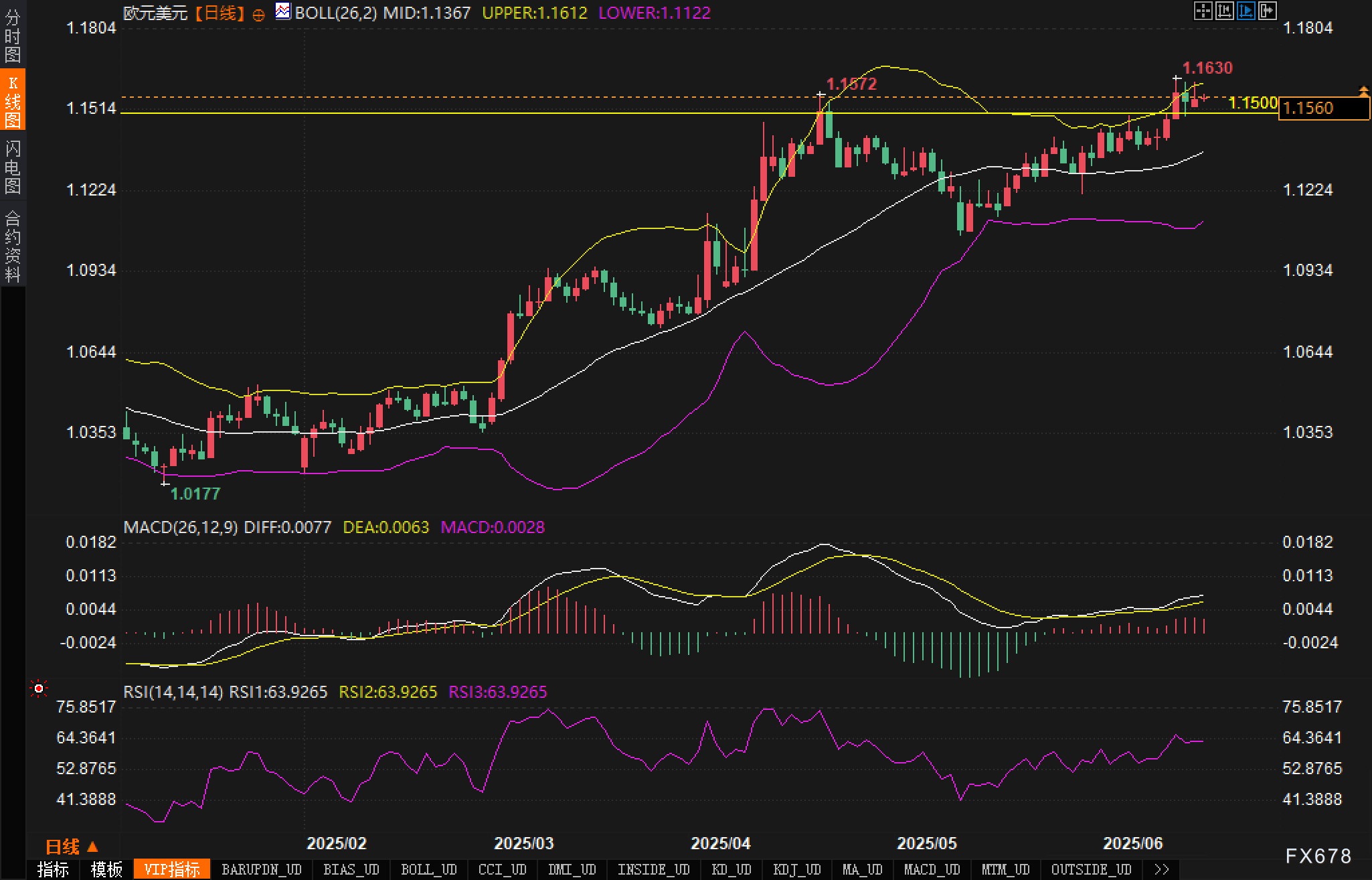 从多头角度分析认为,欧元/美元若能有效突破1.1612阻力位,下一个目标位将指向1.17-1.18区域。支撑这一观点的因素包括:整体上升趋势依然完整,均线系统保持多头排列,以及美元避险属性受到质疑等。然而,多头需要警惕的是,当前技术指标显示的动能衰减信号,以及地缘政治风险可能带来的突发性调整。
